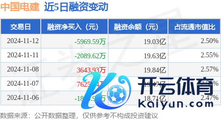 本站讯息,11月12日,中国电建(601669)融资买入6867.47万元,融资偿还1.28亿元,融资净卖出5969.59万元,融资余额19.03亿元。