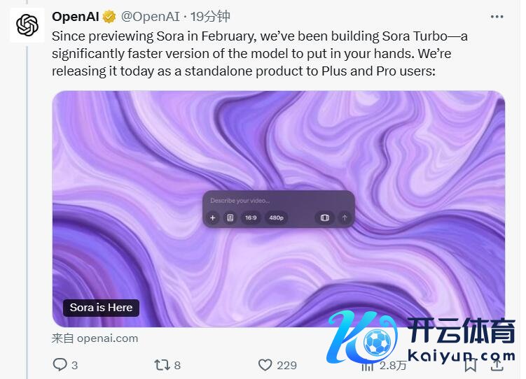 OpenAI称,自2月发布预览Sora以来,一直在构建Sora Turbo——一个速率显著更快的模子版块,本周一,将它看成孤立的家具面向ChatGPT Plus 和ChatGPT Pro的用户推出。