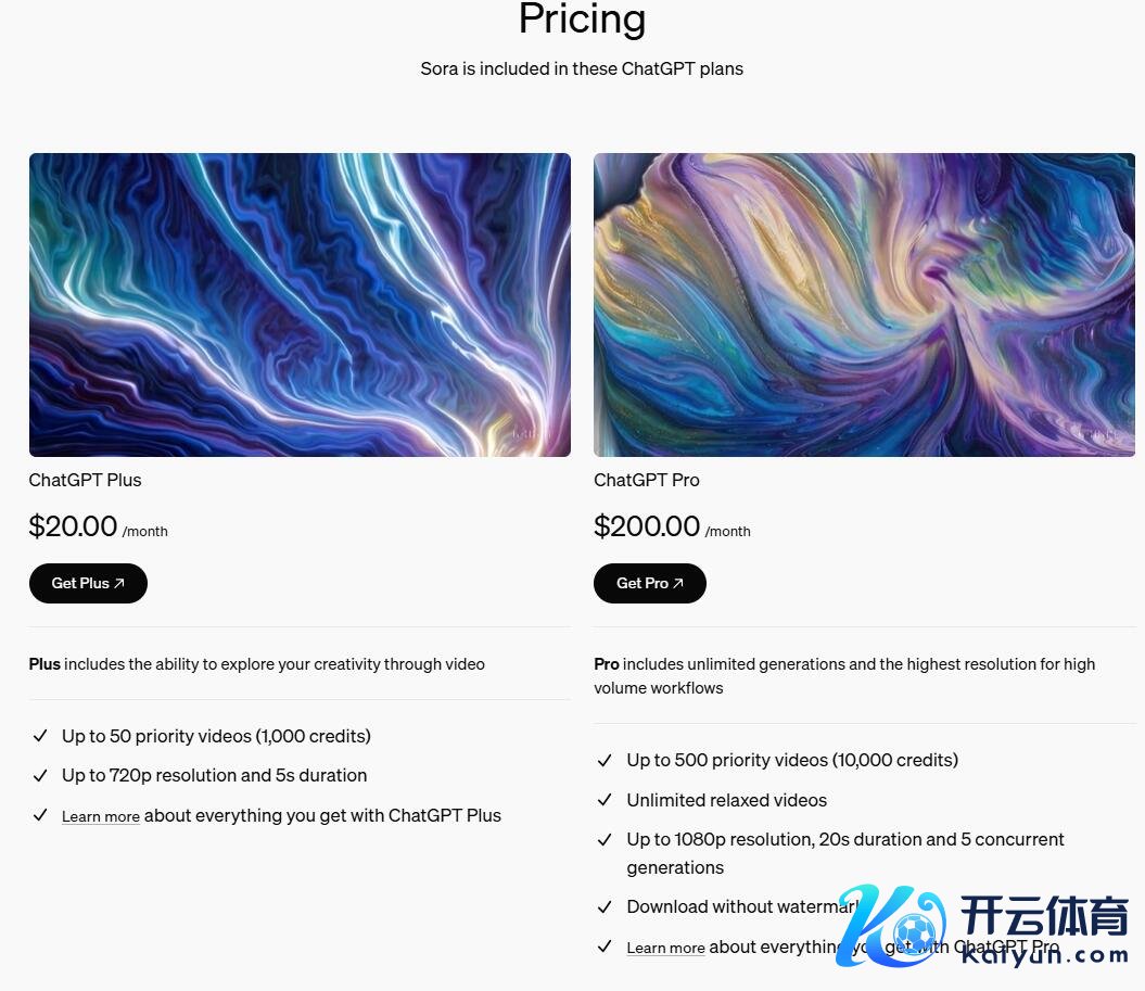 订价方面,Sora当今纳入OpenAI的两个家具套餐,其中,ChatGPT Plus每月收费20好意思元,为订阅用户生成的视频别离率高达720p,时长最长5 秒,ChatGPT Pro每月收费200好意思元,订阅用户不错无尽量生成高别离率的视频,别离率高达1080p、最永劫长20 秒,况兼不错五个视频同期生成,视频不错无水印下载。