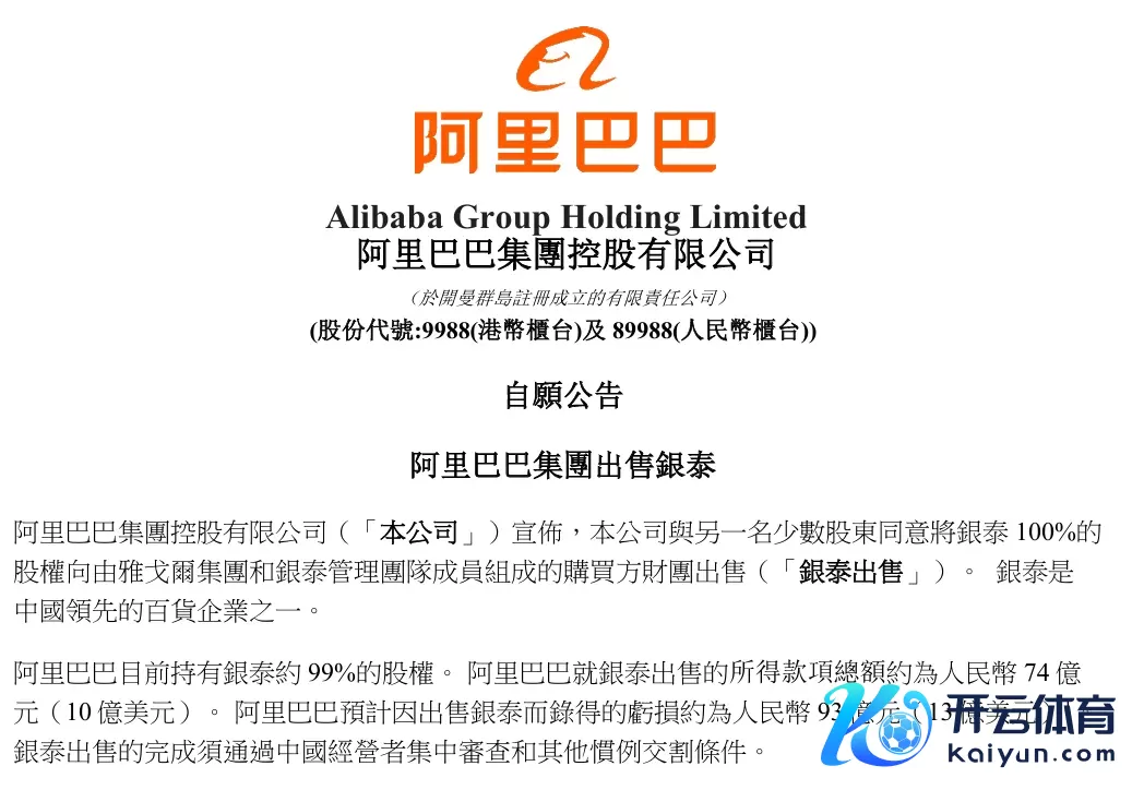 19 昨天 12:39 阿里巴巴:将银泰出售给由雅戈尔集团和银泰搞定团队成员组成的购买方财团阿里巴巴:将银泰出售给由雅戈尔集团和银泰搞定团队成员组成的购买方财团