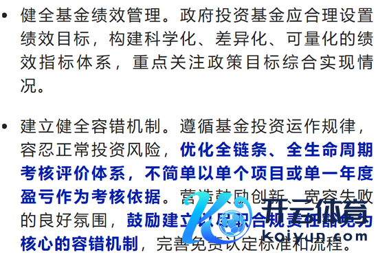 而在政府投资基金层面的容错机制开拓,本次《指挥倡导》的出台,提供了要紧指挥。正如财政部相关负责东谈主在答记者问时默示,为不休基金不休东谈主不敢投、不敢退、怕担责等问题,《指挥倡导》明确建立健全容错机制,从顶层轨制层面为基金及不休机构“松捆”,饱读吹政府投资基金更好施展作用,提高投资效率。