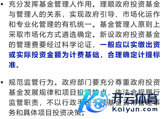 此外,《指挥倡导》明确了政府投资基金的不休费法式:一般应以实缴出资或推行投资金额为计费基础。此前业内通行的计费基础为认缴边界,估量将来一级阛阓举座不休费会出现着落趋势。