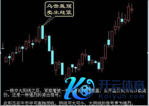这里讲的“乌云”,是指股价上升到高位后,某日出现一条高开低走的大阴线,罩在前边一条阳线的头上,称之为“彤云密布”。该形式的出现,标明得益盘在回吐筹码,股价将出现一段下调行情,应卖出股票。