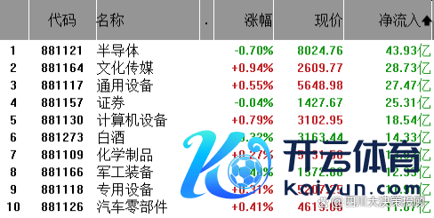 从行业板块资金净流出来看,半导体、文化传媒、通用开辟净流出排行前三,证券、狡计机开辟、白酒等紧随自后。