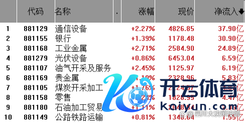 从行业板块资金净流入来看,通讯开辟、银行、工业金属净流入排行前三,光伏开辟、油气开采及作事、贵金属紧随自后。