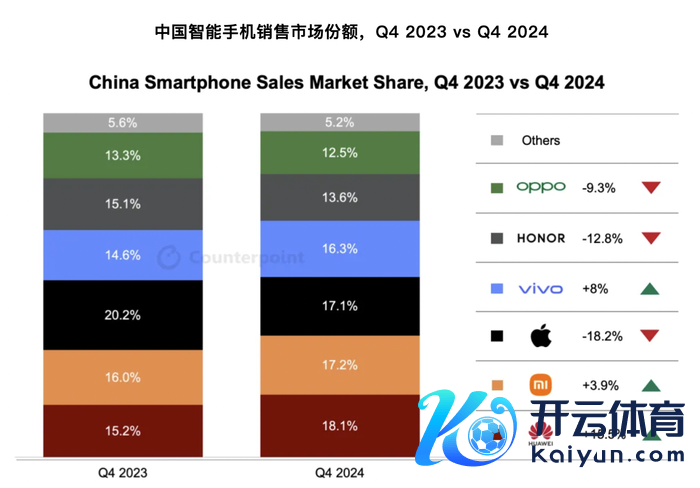继Canalys发布2024年及前年四季度中国智妙手机出货量榜单后,另一片别据分析机构Counterpoint又公布了四季度中国智妙手机销量敷陈。